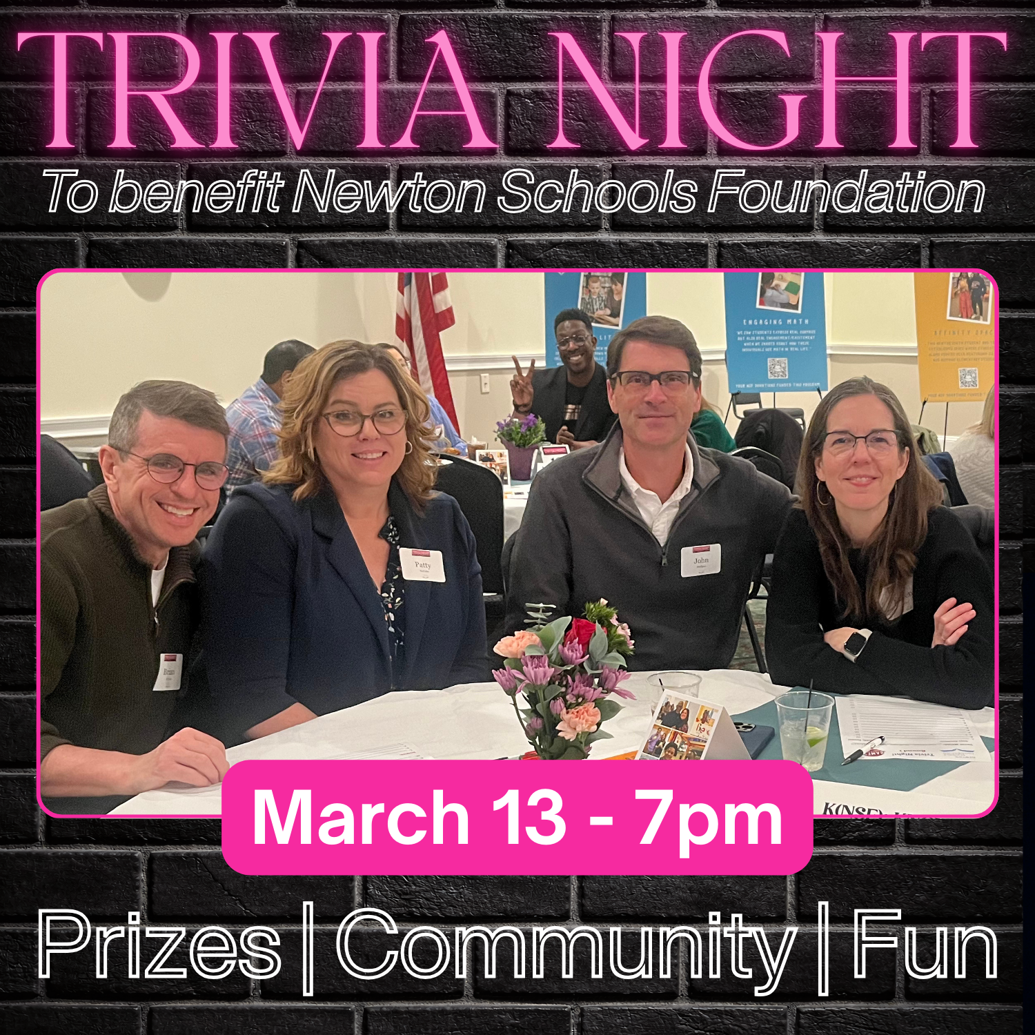 Test your trivia knowledge while helping us raise funds for grants for Newton Public Schools. Invite friends and assemble…